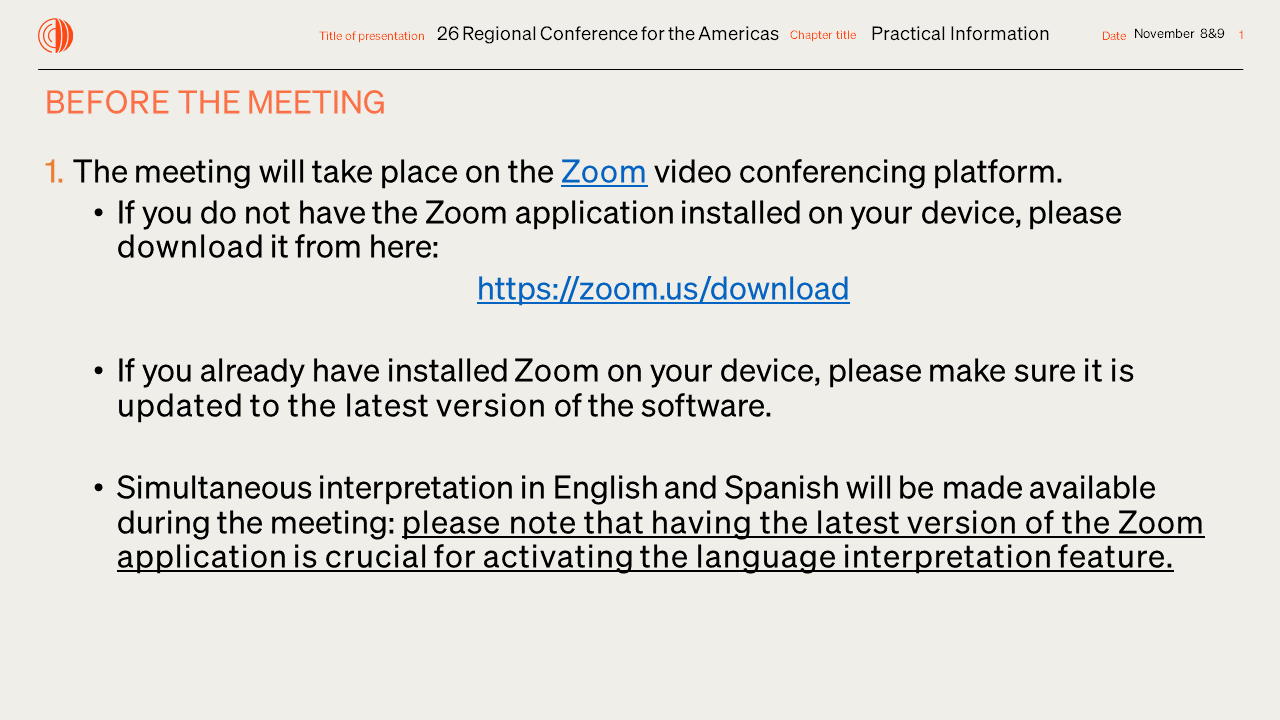 Thus, the 26th Conference of the Regional Commission for the Americas will be held on 8 and 9 November, at 9.30 a.m. (Buenos Aires time), by videoconference (via Zoom).