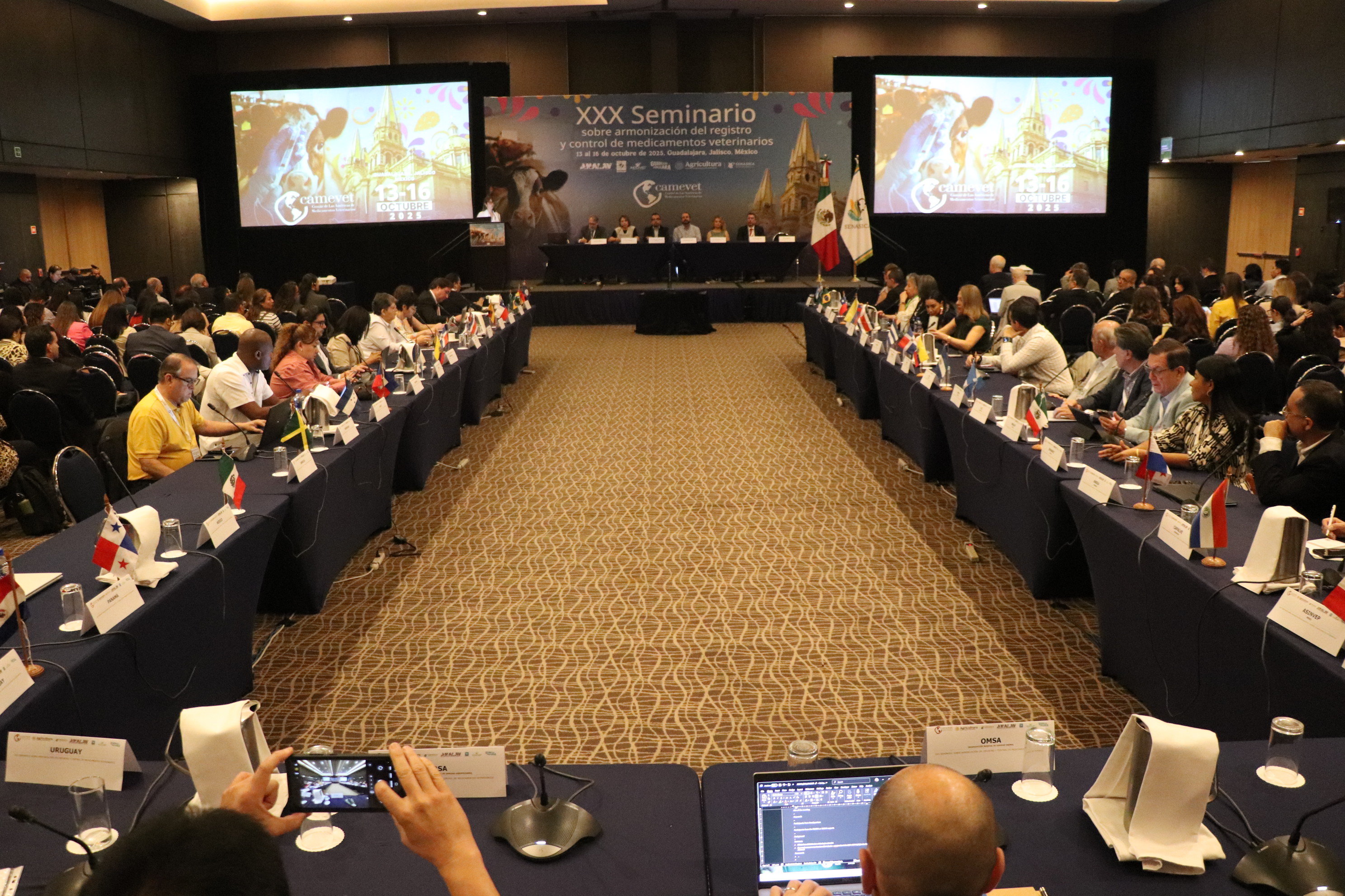 With more than 300 participants, including representatives from veterinary services and industry, gathered in Guadalajara, Mexico, from 13 to 16 October to participate in the XXX CAMEVET Seminar. The Delegates to WOAH from Belize and Chile also participated, and we were joined by the WOAH Regional Representation for the Americas and the Antimicrobial Resistance & Veterinary Products Department from WOAH Headquarters. The meeting served as a key forum for technical exchange and regulatory harmonisation.