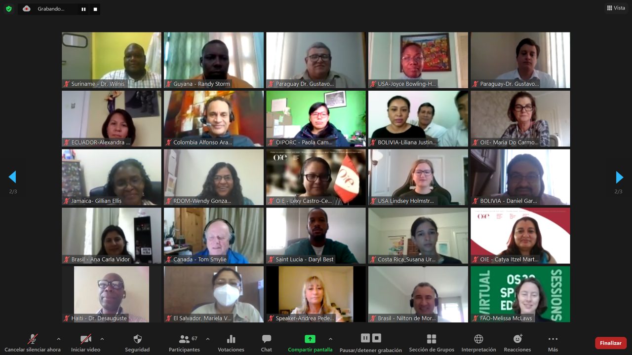 Del 1 al 3 de diciembre se realizó el Taller virtual sobre el reconocimiento oficial de la OIE de estatus para enfermedades animales, enfocado en el mantenimiento, reconfirmación, suspensión y recuperación del estatus para Fiebre Aftosa. Participaron en él representantes de 28 Miembros de las Américas, junto a representantes de Organizaciones internacionales y regionales. (Acceda a la agenda con las presentaciones).