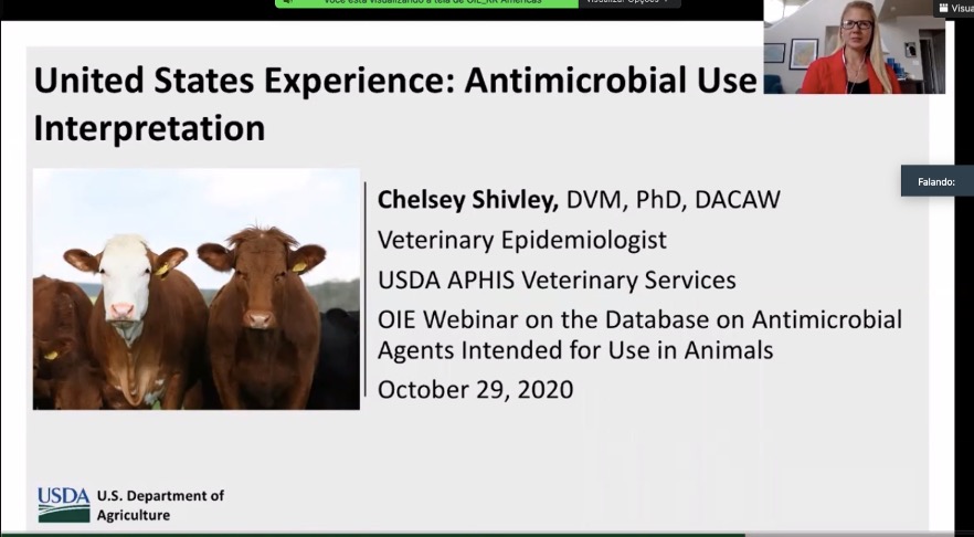 O seminário seminario contó con presentaciones y debates técnicos, centrados en el Cuestionario del Uso de Antimicrobianos (AMU) y el Cálculo de kilogramos de ingredientes activos; Biomasa animal y el futuro software de la base de datos AMU de la OIE. Además, en cada sesión un país de la región compartió su experiencia. Participaron del seminario 103 personas, provenientes de 36 países de la Américas, incluyendo a los Puntos Focales Nacionales de Productos Veterinarios, de Notificación de Enfermedades, representantes de organizaciones internacionales y personal de la OIE.