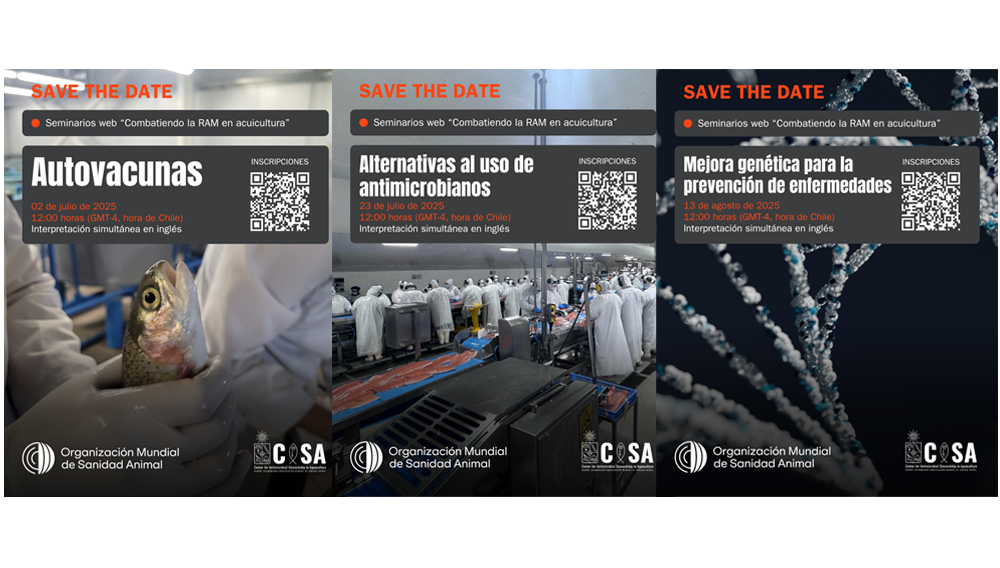 La Representación Regional de la OMSA para las Américas, junto al Centro Colaborador de la OMSA para promover el uso prudente de antimicrobianos en acuicultura (CASA), convocan a esta serie de seminarios web para sensibilizar sobre las alternativas a los antimicrobianos disponibles.