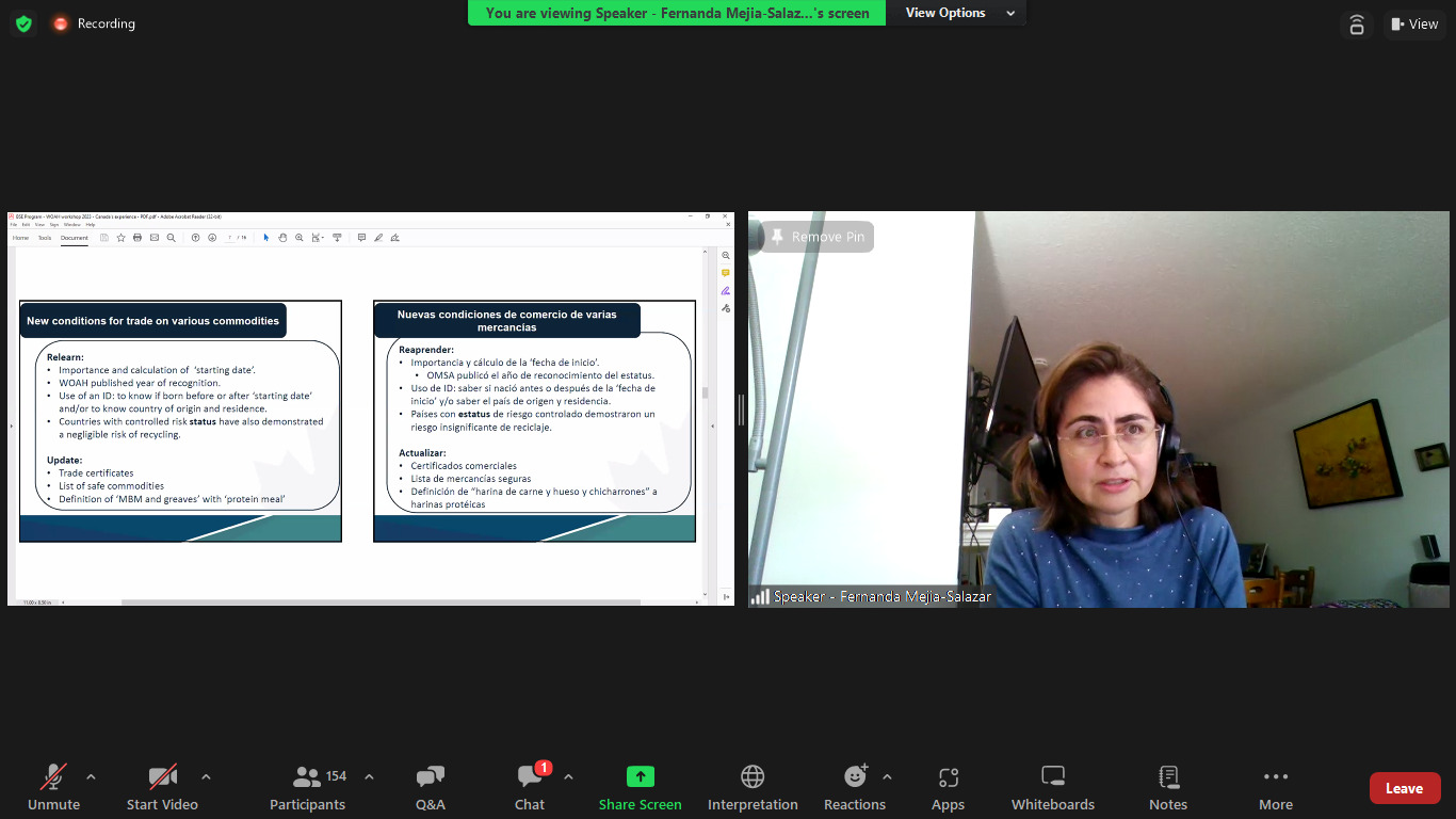 El 20 de octubre se llevó a cabo de manera virtual el taller regional Encefalopatía Espongiforme Bovina: Actualización en el Código Sanitario para los Animales Terrestres. Asistieron al encuentro, más de 150 participantes de los servicios veterinarios de la región